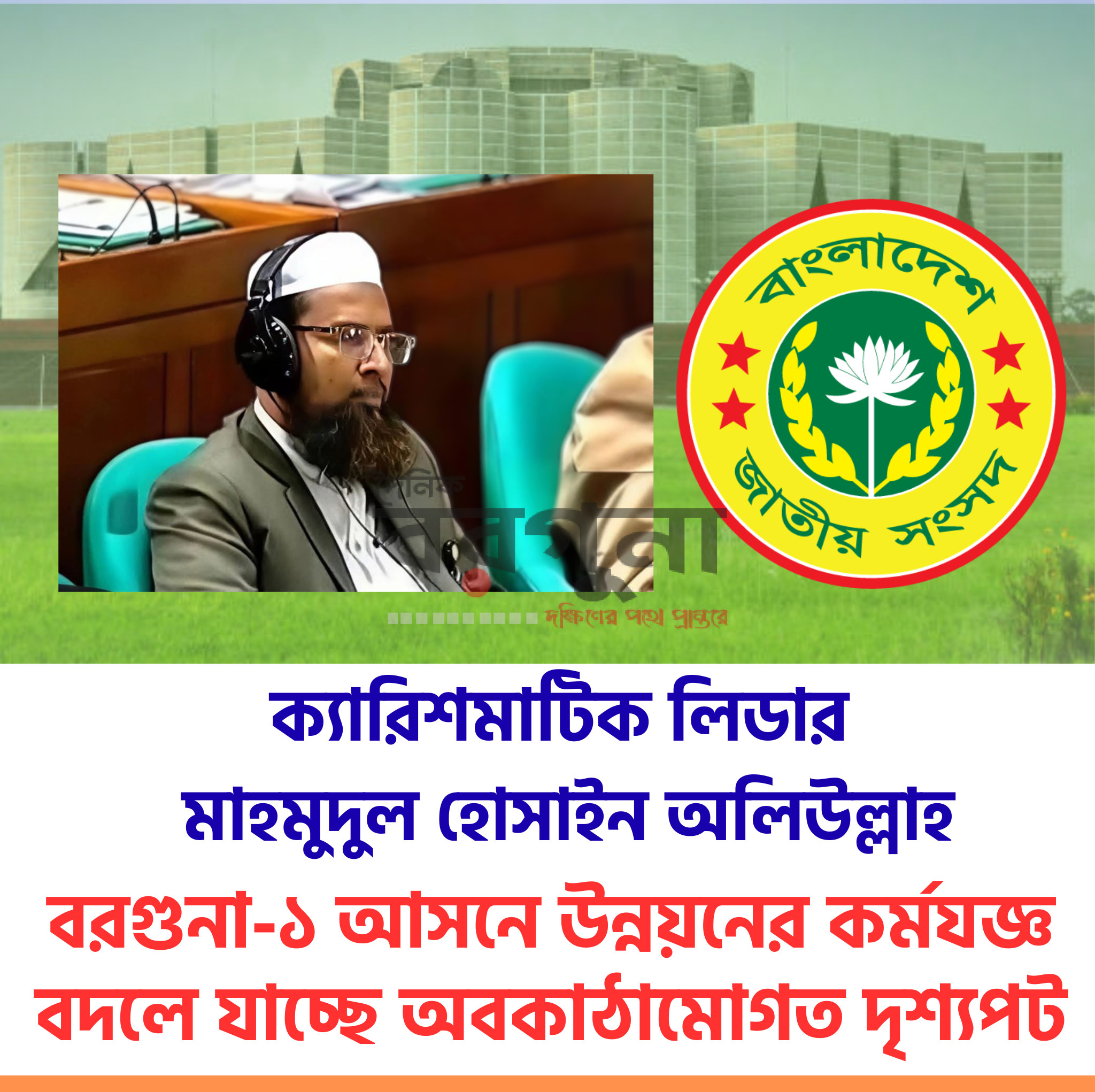 বরগুনা-১ আসনের সংসদ সদস্য মাহমুদুল হোসাইন অলিউল্লাহর হাত ধরে পাল্টে যাচ্ছে স্থানীয় অবকাঠামোগত উন্নয়নের চিত্র। দায়িত্ব গ্রহণের অল্প দিনের মধ্যেই তার কর্মদক্ষতা ও সততায় এই আসনের সাধারণ মানুষের মধ্যে নতুন আশার সঞ্চার হয়েছে। সংশ্লিষ্ট সূত্রে জানা গেছে, ইতিমধ্যে বরগুনা-১ আসনের প্রায় ৪০ শতাংশ রাস্তা নতুন নির্মাণ ও সংস্কারের জন্য চূড়ান্ত বিস্তারিত...